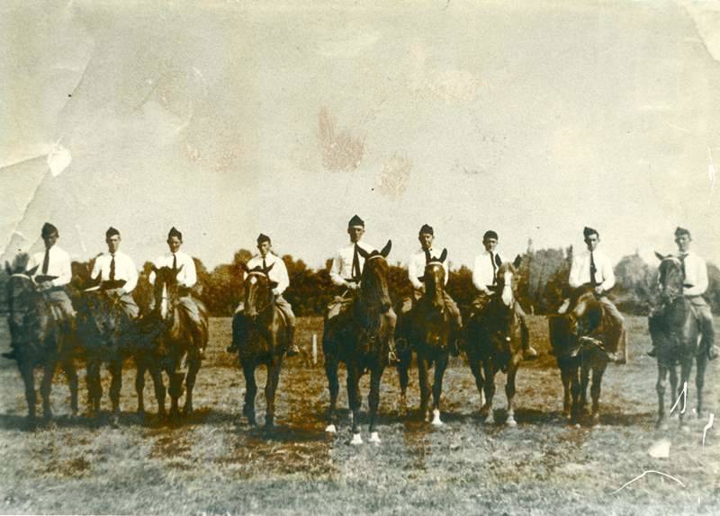 Deze foto van rijvereniging Sint Lambertus is gemaakt omstreeks de jaarwisseling 1936/37. We zien van links naar rechts: Joh. van Kasteren, Harrie van Houthem, Jan Schellekens, Marinus den Otter, commandant Bob Endstra, Joh. van Breugel, Marinus Verhagen, Antoon Verhagen en Kees van Eijndhoven.